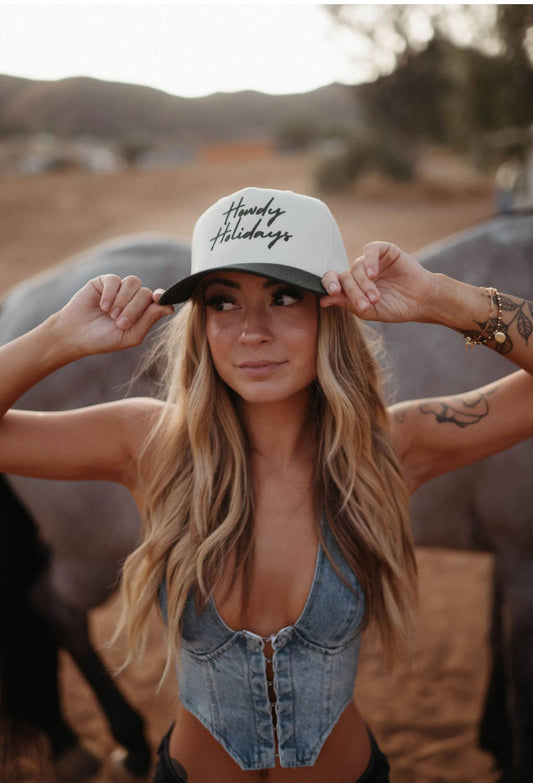 "Howdy Holidays" Christmas Hat – Deep Green & Cream Canvas