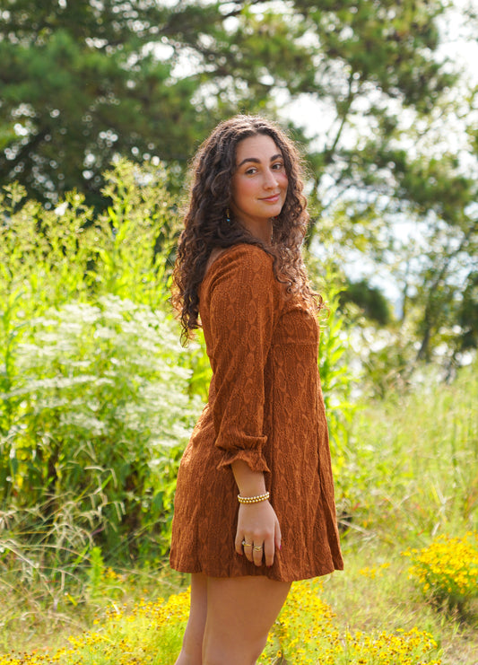 Flower-Textured Tiered Pillowy Sleeve Dress