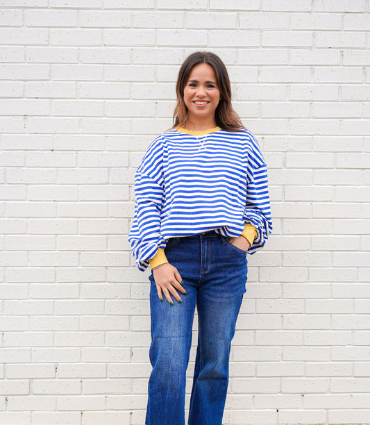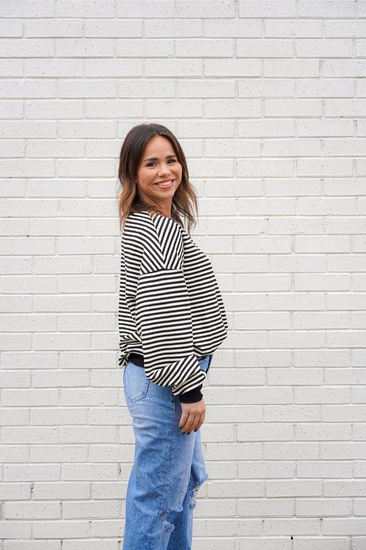 Black Timeless Striped Crew Neck Top – Casual & Versatile Everyday Wear
